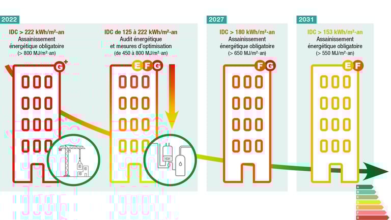 Introduit en 2010, l’IDC est progressivement devenu obligatoire pour la plupart des bâtiments, et son application sera généralisée à l’ensemble du parc immobilier genevois dès 2027.
